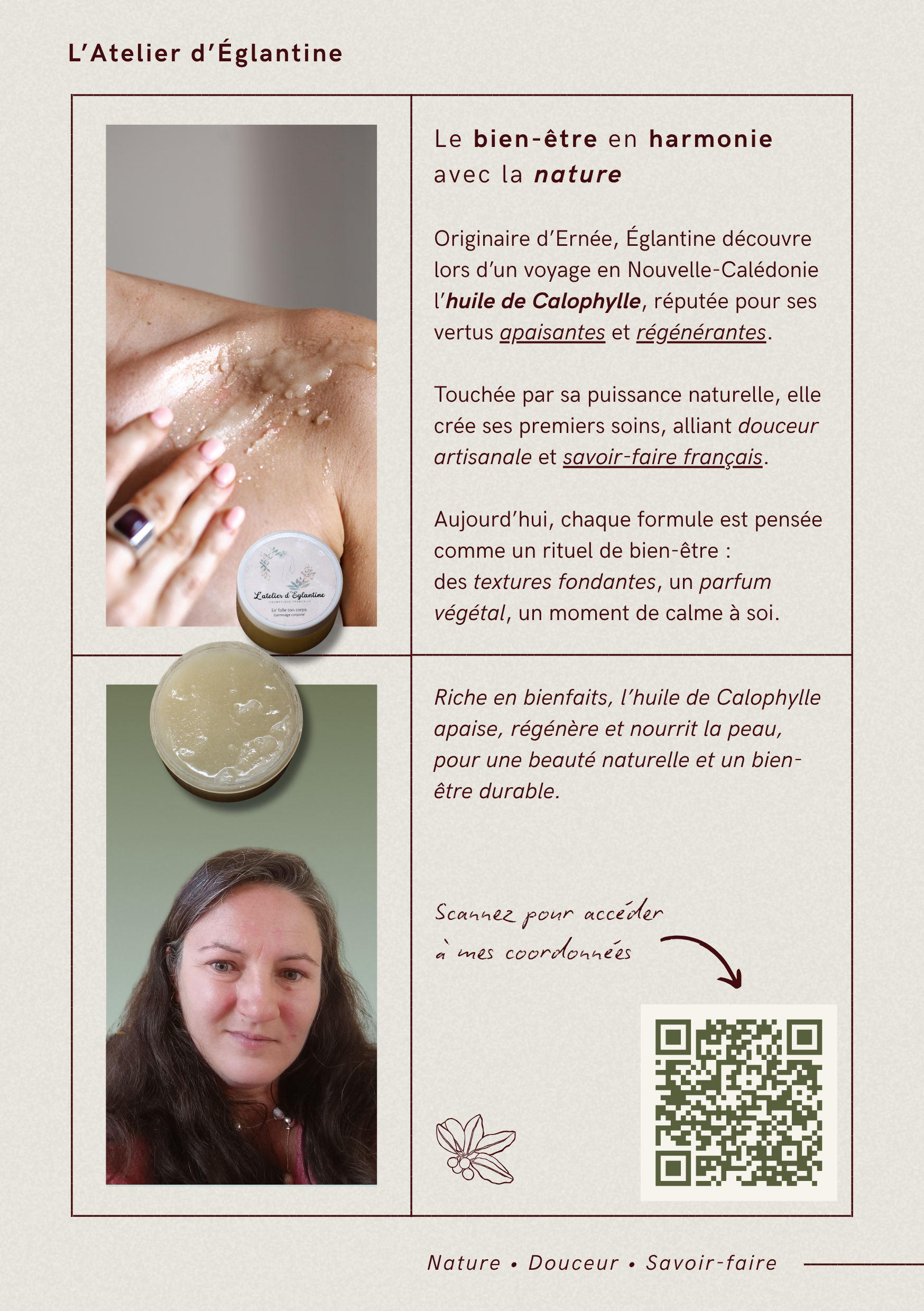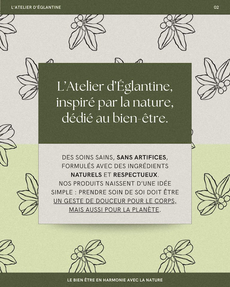 L’Atelier d’Églantine is a skincare brand centered around slow rituals and natural care. The project focused on the creation of a social media campaign to introduce a hydrating exfoliant formulated with calophyllum oil.